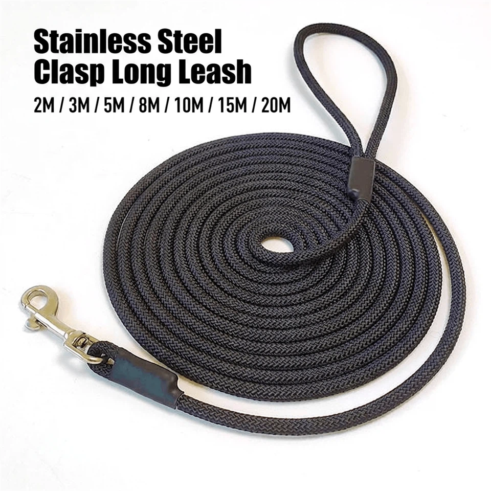 - Our iPeti® Long Training Leash is engineered for professional dog trainers and dedicated pet owners who demand durability and safety. Crafted from high-density mountain-climbing grade nylon rope, this leash is designed to provide maximum freedom during recall training, hiking, or backyard play while ensuring you maintain absolute control. Featuring a premium 304 stainless steel swivel clasp, it offers industry-leading rust resistance and a massive breaking strength of up to 600kg (1322 lbs), making it suitable for all breeds from energetic puppies to powerful large dogs.